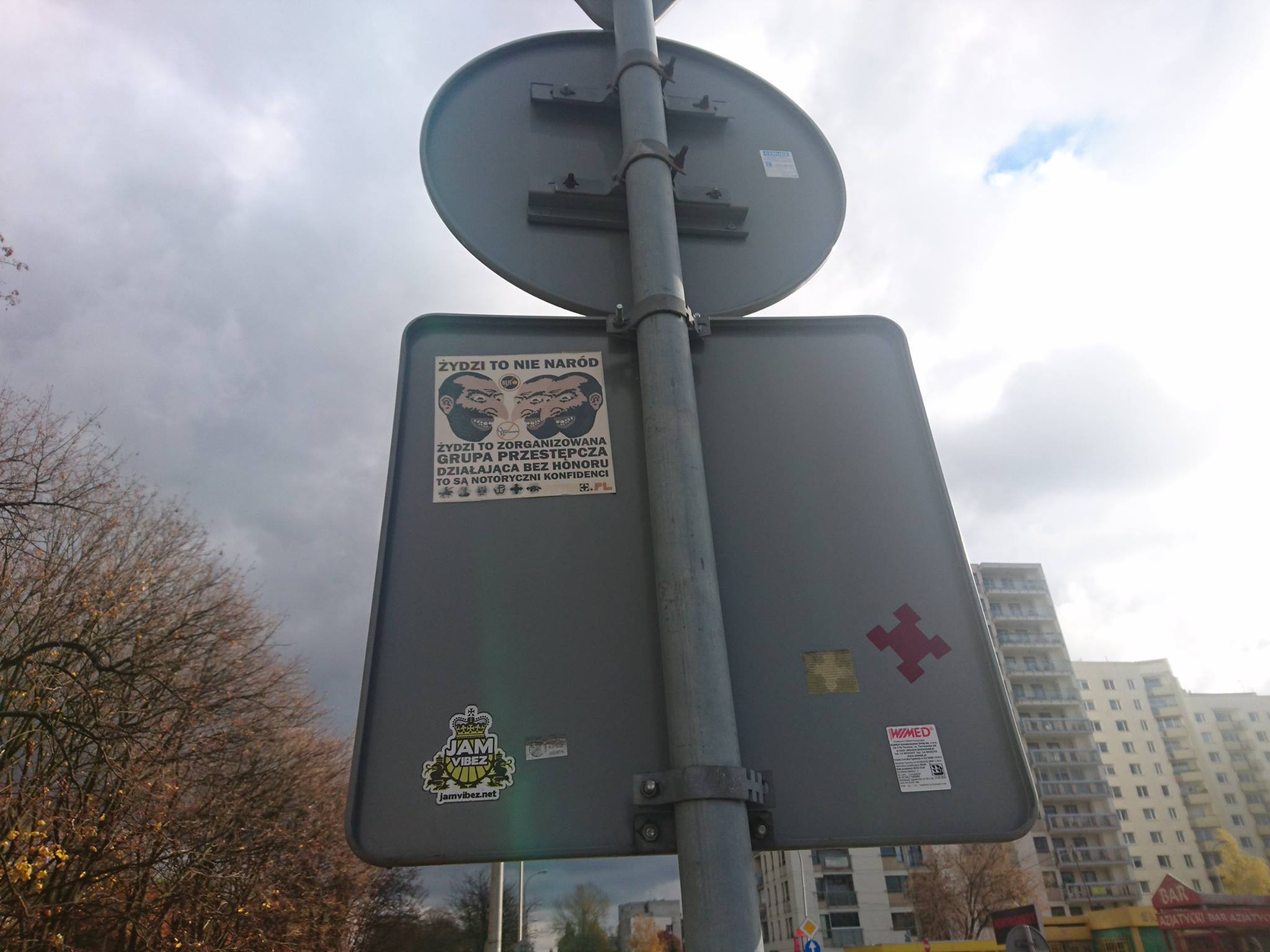 „Pętla na Dickensa i jej okolice, cały Park Szczęśliwicki (a także inne miejsca na Ochocie) co i rusz obklejane są antysemickimi, ksenofobicznymi itd. wlepkami. Jeśli ktoś z Was spaceruje/przechodzi tamtędy – bardzo proszę, zwracajcie uwagę na słupy, latarnie i znaki drogowe i zrywajcie te koszmarne naklejki” – pisze użytkowniczka.