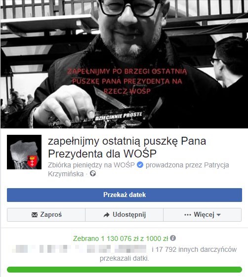 „Czy chcesz wesprzeć wraz ze mną szlachetny cel? Zbieram pieniądze na rzecz organizacji WOŚP, a każdy Twój datek — zarówno mały, jak i duży — będzie się liczyć. Przyda się każdy grosz. Dziękuję za wsparcie. Informacje o organizacji WOŚP są podane poniżej” – czytamy na zbiórce, która zatytułowana jest „Ostatnia puszka Pawła Adamowicza”.