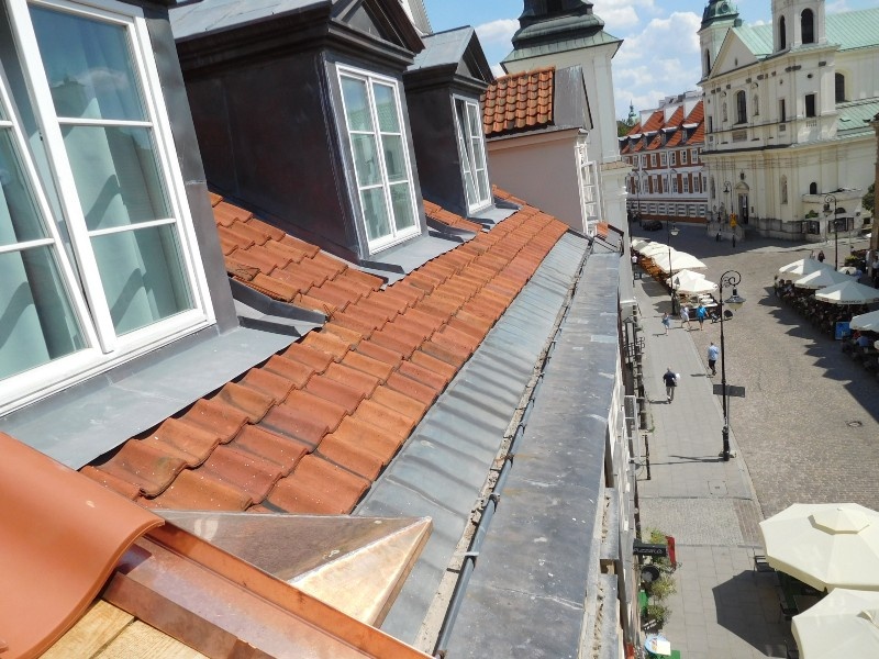 Remont budynku jest bardzo zaawansowany. Do tej pory wykonano częściową wymianę więźby oraz wszystkich krokwi, ocieplono dach, układana jest dachówka. Na poddaszu wykonano konstrukcję stalową umożliwiającą wygospodarowanie tam miejsca na sale. W dachu od strony wschodniej zamontowano pięć nowych lukarn doświetlających oraz od strony frontowej odtworzono dwie. Wszystkie są oblicowane blachą miedzianą.