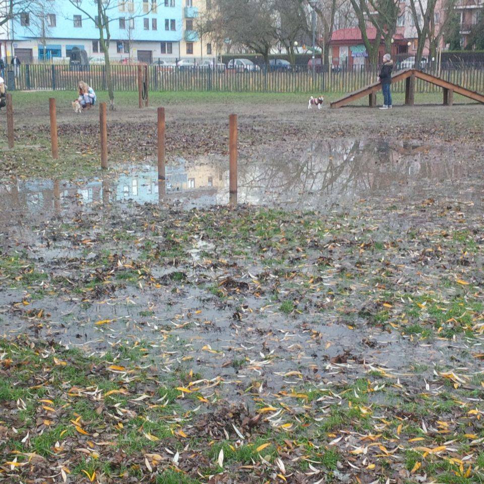 Nie tak dawno temu napisali do nas właściciele psów mieszkający niedaleko ul. Szaserów. Specjalnie dla ich czworonogów stworzono w Parku Polińskiego wybieg. Niestety, jak pokazują zdjęcia, murawa woła o pomstę do nieba. Nie jest to jednak jedyne miejsce w parku, które przechodzi obecnie powódź.