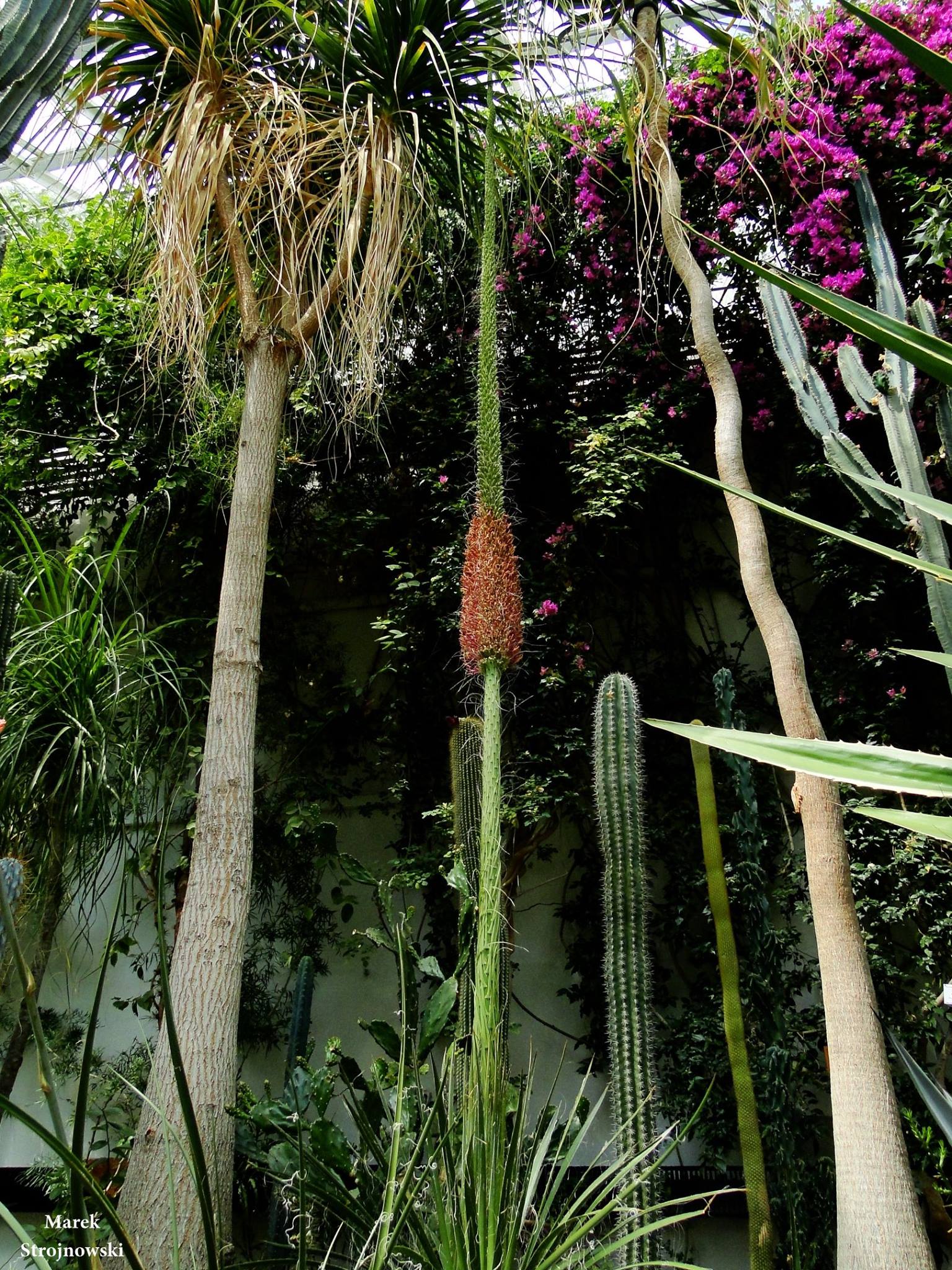 „W naszej Oranżerii zakwitła Agave filifera. Agawy są roślinami monokarpicznymi, hapaksantami (kwitną tylko jeden raz w życiu – po rozsianiu nasion zamierają!). Nazwa tej agawy pochodzi od łacińskiego słowa filifer – nitka, która nawiązuje do białych nitek zwieszających się z brzegów liści. Dorosłe rośliny tworzą rozety o średnicy nawet większej niż pół metra i wysokości 70 cm i mają długie, wąskie, ciemnozielone liście. Agawa ta wytwarza kwiatostan typu kłos, który jest prosty, nierozgałęziony, dorasta do 3 m wysokości. Pojedyncze kwiaty mają drobne, zielonkawe płatki, ale prawdziwą ozdobą są długie, purpurowe nitki pręcikowe. Agave filifera pochodzi z Meksyku i jest gatunkiem bardzo często uprawianym w ogrodach botanicznych na świecie. Rozmnażana z nasion lub odrostów, które tworzą się u nasady łodygi.” – piszą specjaliści UW