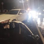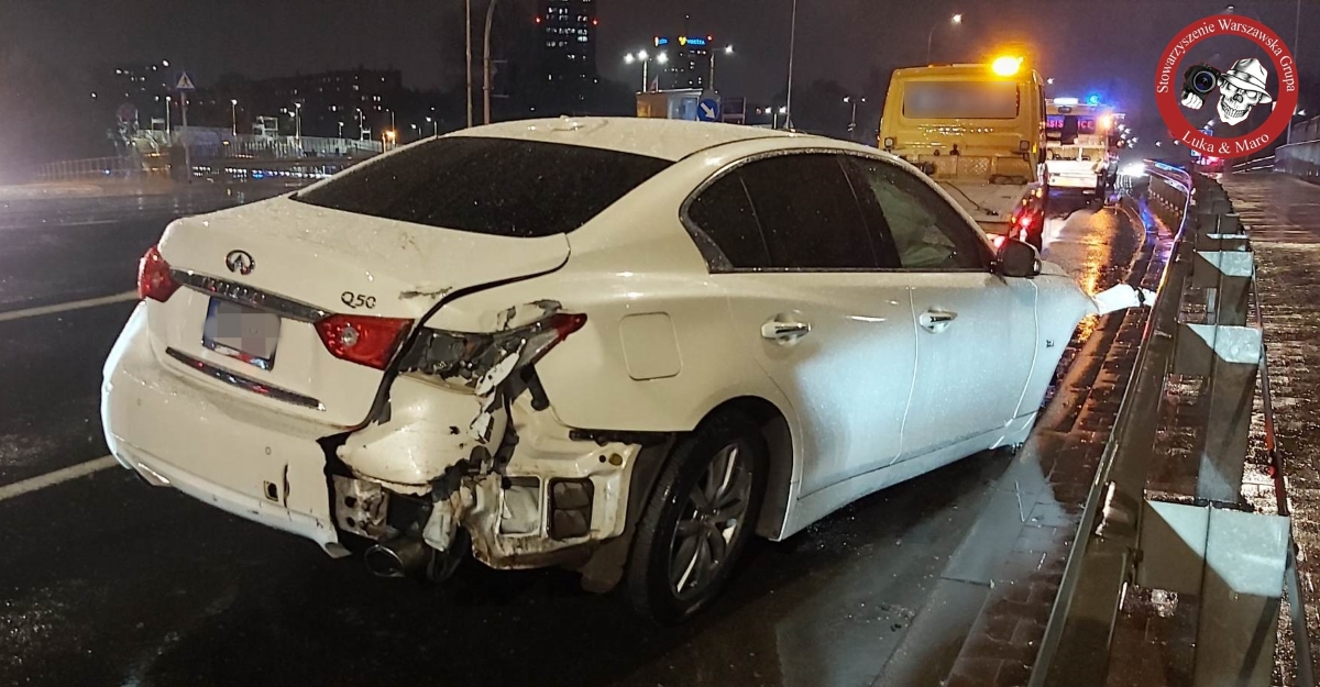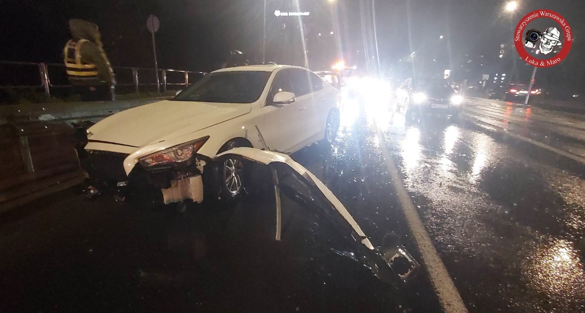 Na skrzyżowaniu ulic Powązkowskiej z Duchnicką kierowca najprawdopodobniej stracił panowanie nad autem i uderzył w bariery.