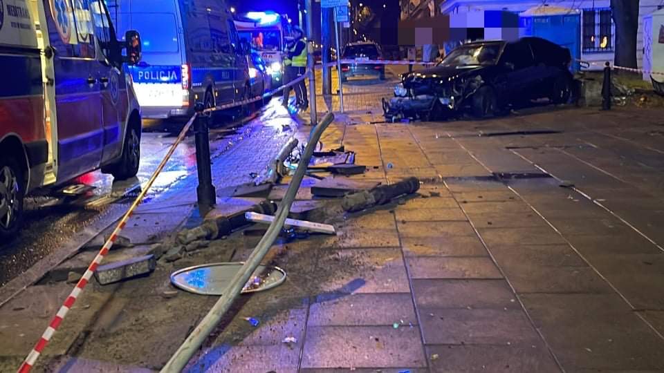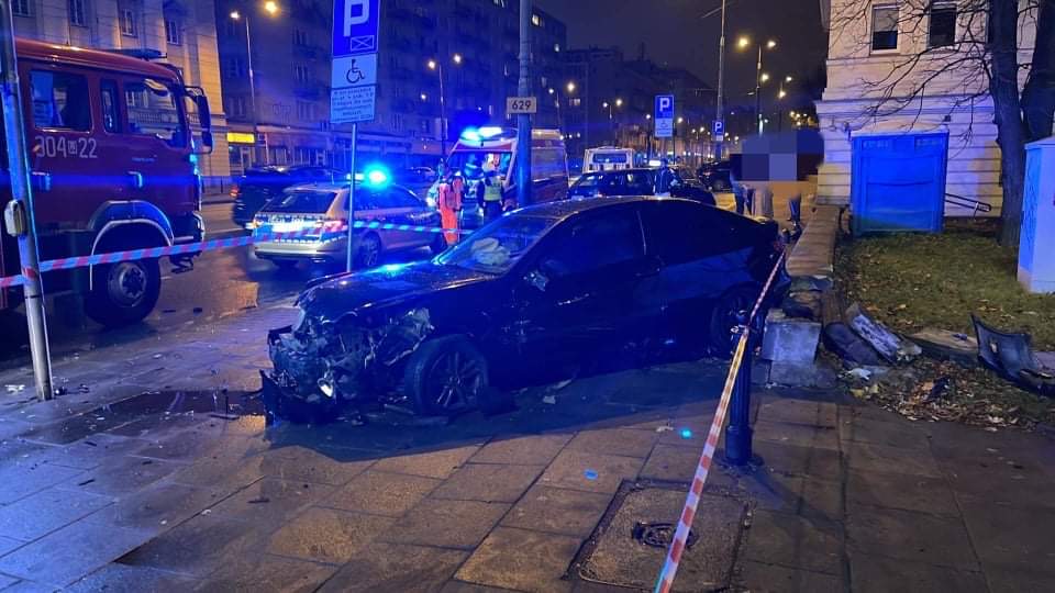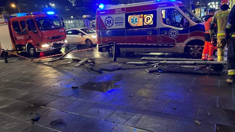 Na Placu Bankowym kierujący samochodem osobowy marki mercedes stracił panowanie nad autem zjechał na chodnik skosił znaki, słupki oraz sygnalizator i wjechał w dwójkę pieszych. Ranni trafili do szpitala.