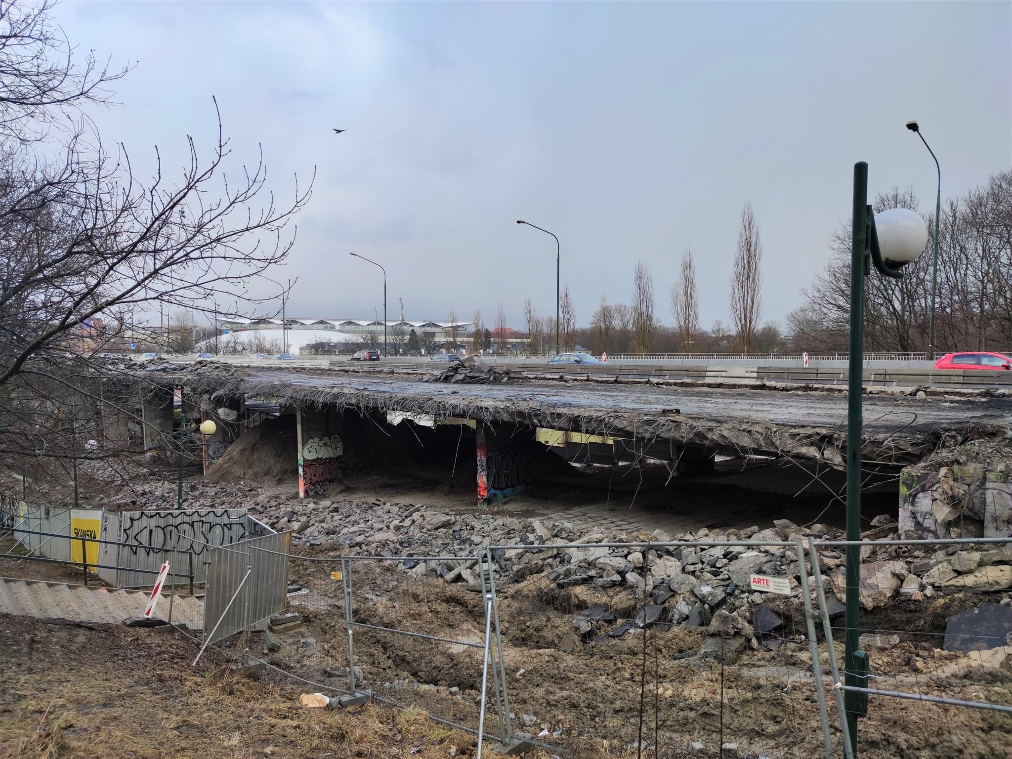Zapraszamy do obejrzenia fotorelacji z trwającej rozbiórki północnego wiaduktu Trasy Łazienkowskiej. Od wczoraj rozkuwana jest płyta wiaduktu.