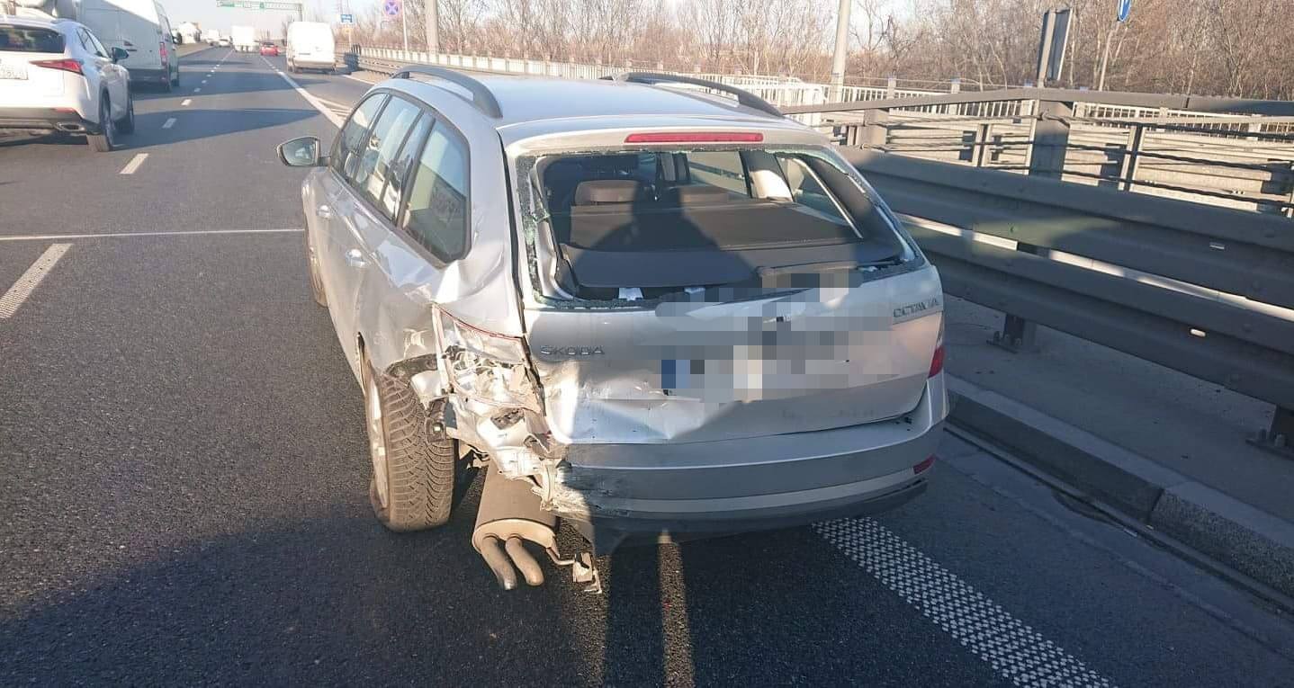 Na trasie S8 na wysokości Wisłostrady doszło do zderzenia BMW i Skody. Kierowca BMW nie dostosował prędkości i uderzył w tył Skody. Nikt nie został ranny.