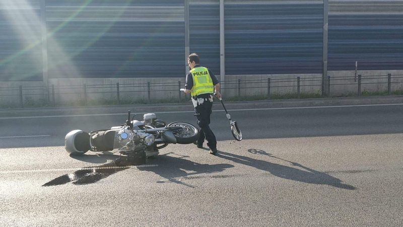 Motocyklista trafił do szpitala z obrażeniami. Jeden pas jest zablokowany.