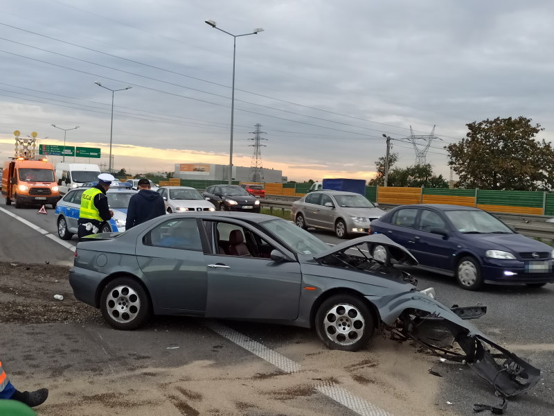 W wyniku zderzenia uszkodzeniu uległy cztery pojazdy, jedno uderzyło w bariery.
