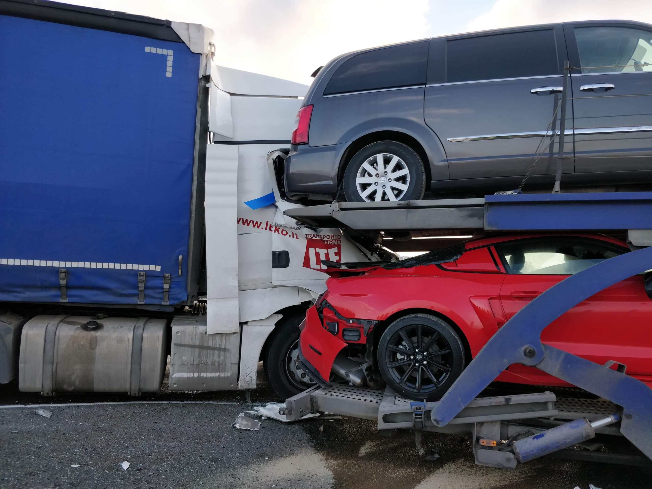 W zderzeniu uczestniczyły dwa samochody ciężarowe oraz trzeci, który na lawecie przewoził auta luksusowe. Poważnie uszkodzone są między innymi fordy Mustangi i Mercedesy.