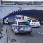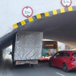 Samochód dostawczy zaklinował się pod wiaduktem kolejowym na Targowej