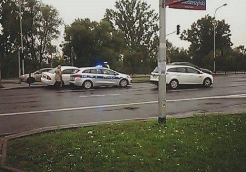 Najprawdopodobniej kierowca stracił panowanie nad pojazdem. Na miejscu jest już policja. Ruch w tym miejscu odbywa się płynnie, choć na lewym pasie stoi uszkodzony samochód oraz służby porządkowe.