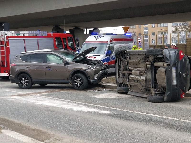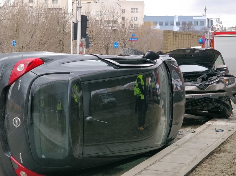 Do zdarzenia doszło na skrzyżowaniu Witosa i Sobieskiego. Zderzyły się tam opel i toyota. Jedno z pojazdów po zderzeniu przewróciło się na bok.