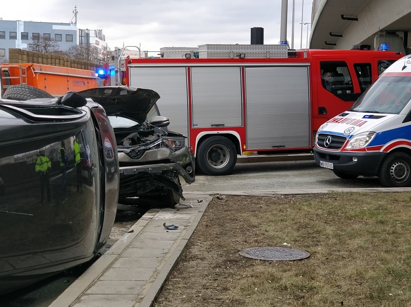 Na Mokotowie miało miejsce zderzenie dwóch pojazdów i dachowanie jednego z nich. Są utrudnienia.