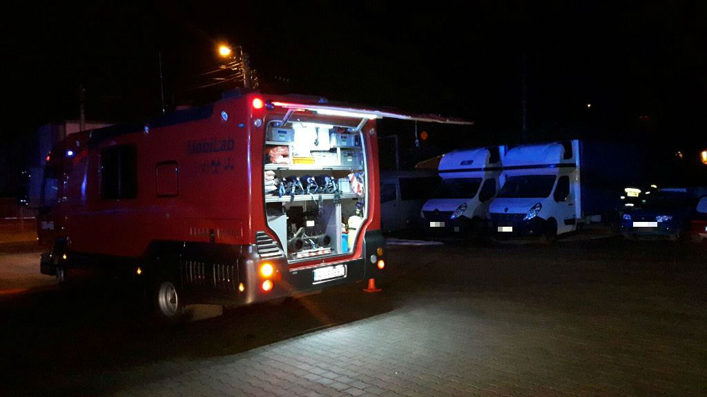 Po przybyciu na miejsce zdarzenia stwierdzono, że samochód (bus) został oblany kwasem siarkowym. Reszta substancji pozostała w pojemniku pozostawionym na dachu pojazdu. Zastęp z macierzystej JRG zneutralizował kwas wapnem przed przybyciem zastępu z JRG 6. Działania SGR Chem-Eko „Warszawa 6” polegały na potwierdzeniu identyfikacji kwasu przy pomocy urządzeń pomiarowych a następnie spłukaniu samochodu i terenu wokół dużą ilością wody.