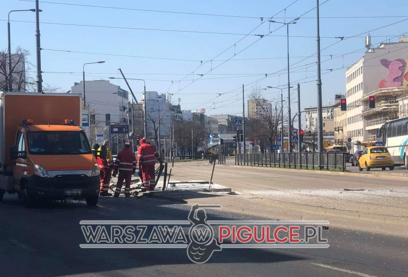 Samochód wjechał w bariery. Szkło na torach, ruch tramwajów wstrzymany