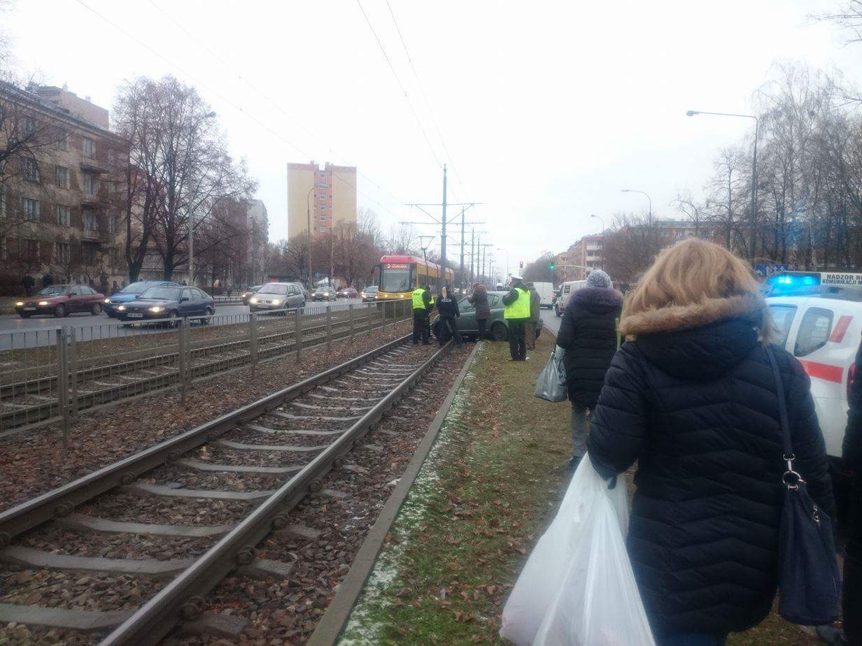 Samochód wpadł na torowisko na Grójeckiej [UTRUDNIENIA W RUCHU]