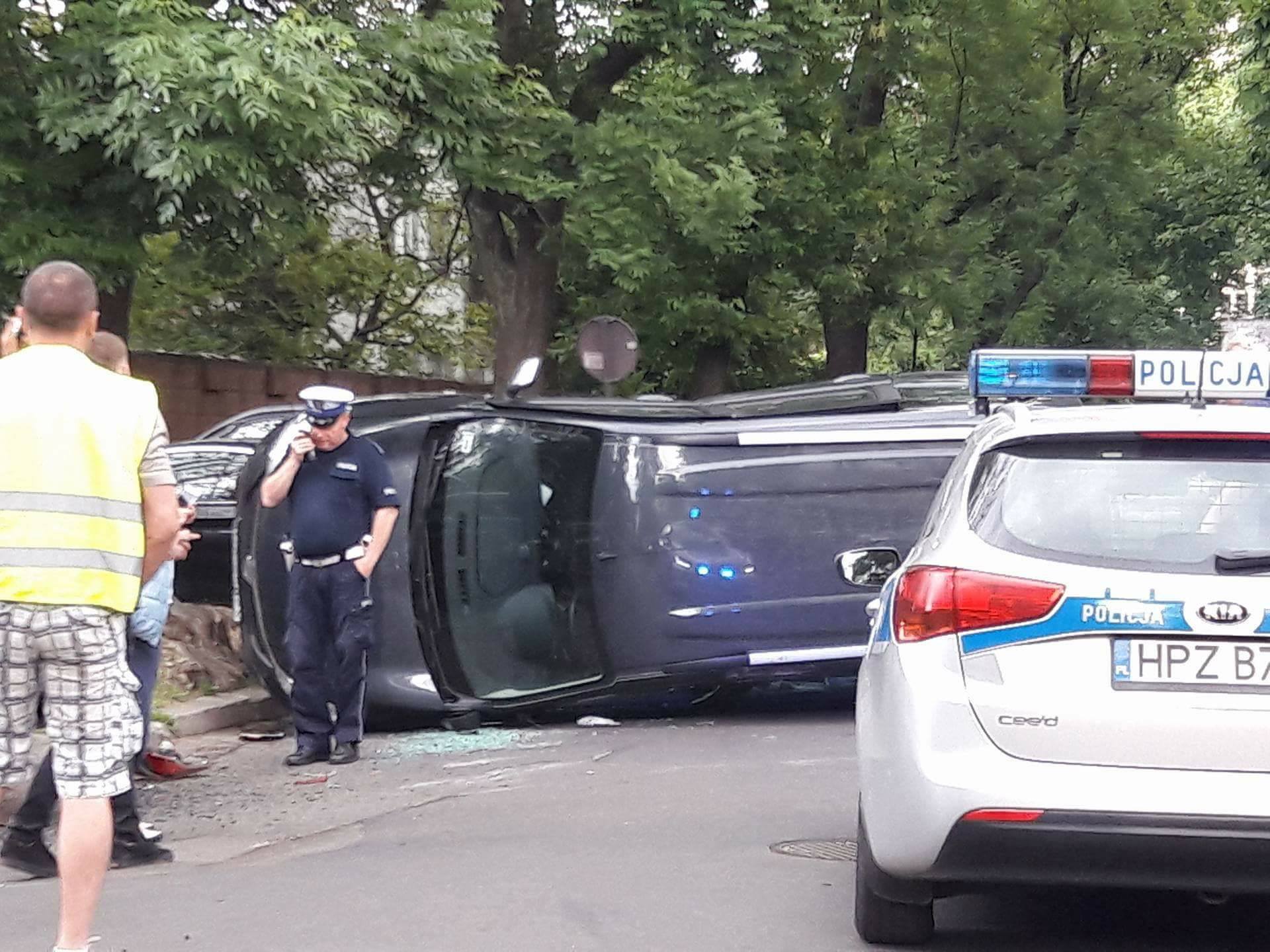 Saska Kępa: samochód na boku po zderzeniu