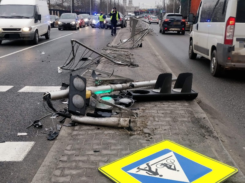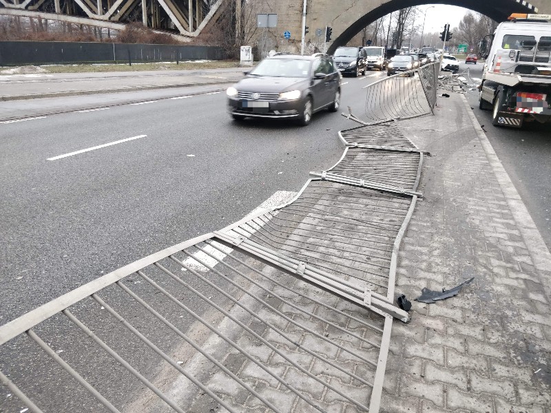 Ścięte zostały także sygnalizacja świetlna i około 30 metrów barierek.