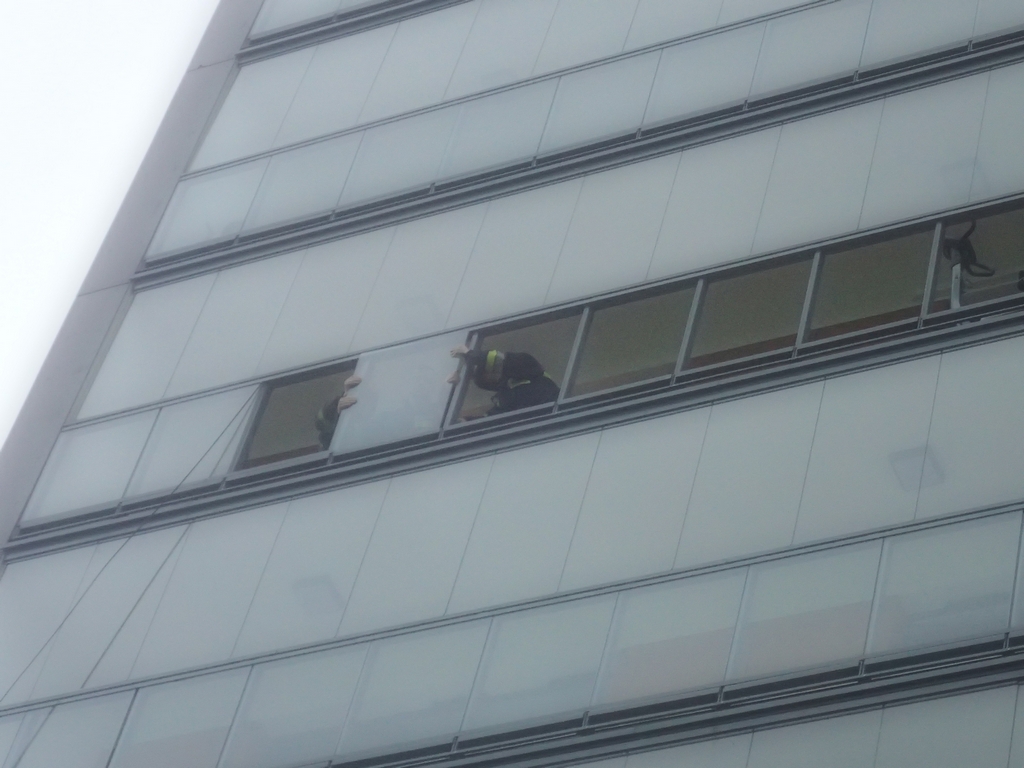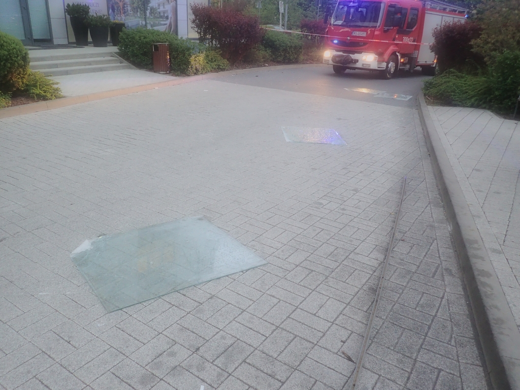 Działania PSP polegały na zabezpieczeniu zdarzenia oraz demontażu trzech pozostałych szyb, które groziły wypadnięciem.