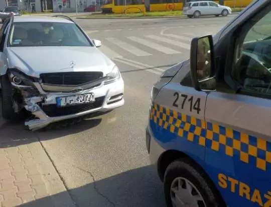 Do zdarzenia doszło około godziny 8.15. Kierujący mercedesem kombi nie zapanował nad swoim autem i wpadł na słup sygnalizacji drogowej oraz znak drogowy. Oba elementy infrastruktury zostały przez auto przewrócone. Z ziemi wystawały przewody elektryczne. Strażnicy miejscy zabezpieczyli je i wezwali policję i służbę dyżurną ZDM. 30-letni kierowca tłumaczył, że w jego pojeździe zawiodły hamulce. Mężczyzna był trzeźwy. Wyjaśnieniem dokładnej przyczyny zdarzenia zajęła się policja. Do usuwania skutków kolizji przystąpiły służby.