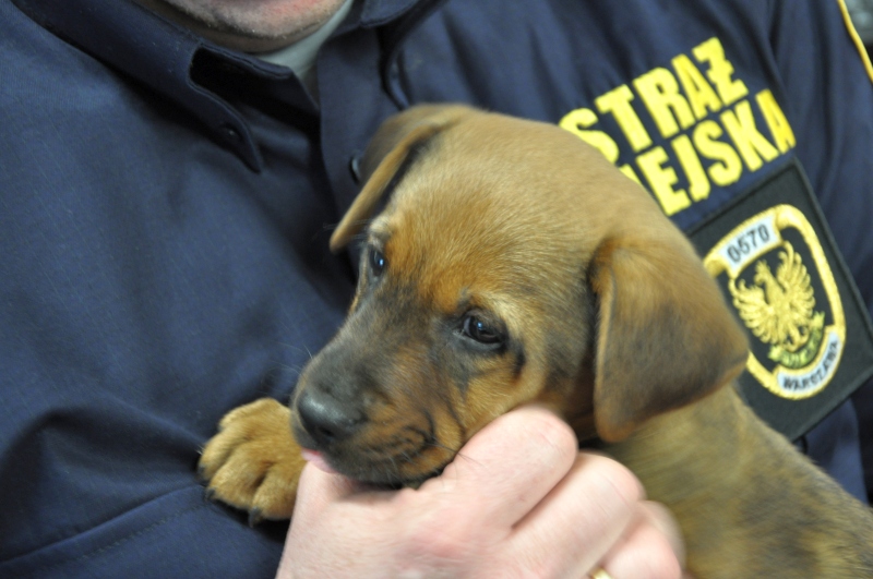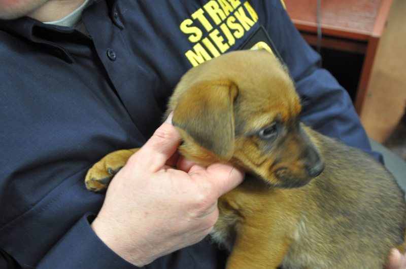 Nikt ze znajdujących się na przystanku nie był jego właścicielem. Jedna z osób czekających na tramwaj poinformowała, że kilka minut wcześniej przy przystanku zatrzymał się samochód, z którego ktoś wyrzucił psiaka. Strażniczka przygarnęła porzuconego malucha. Wieści o porzuconym zwierzątku szybko rozeszły się po siedzibie przy Młynarskiej. Jeden ze strażników podjął męską decyzję przygarnięcia psa. Od teraz Słoik – bo takie dostał imię – będzie wiódł szczęśliwe życie razem z suczką Figą i kotem Piorunem.