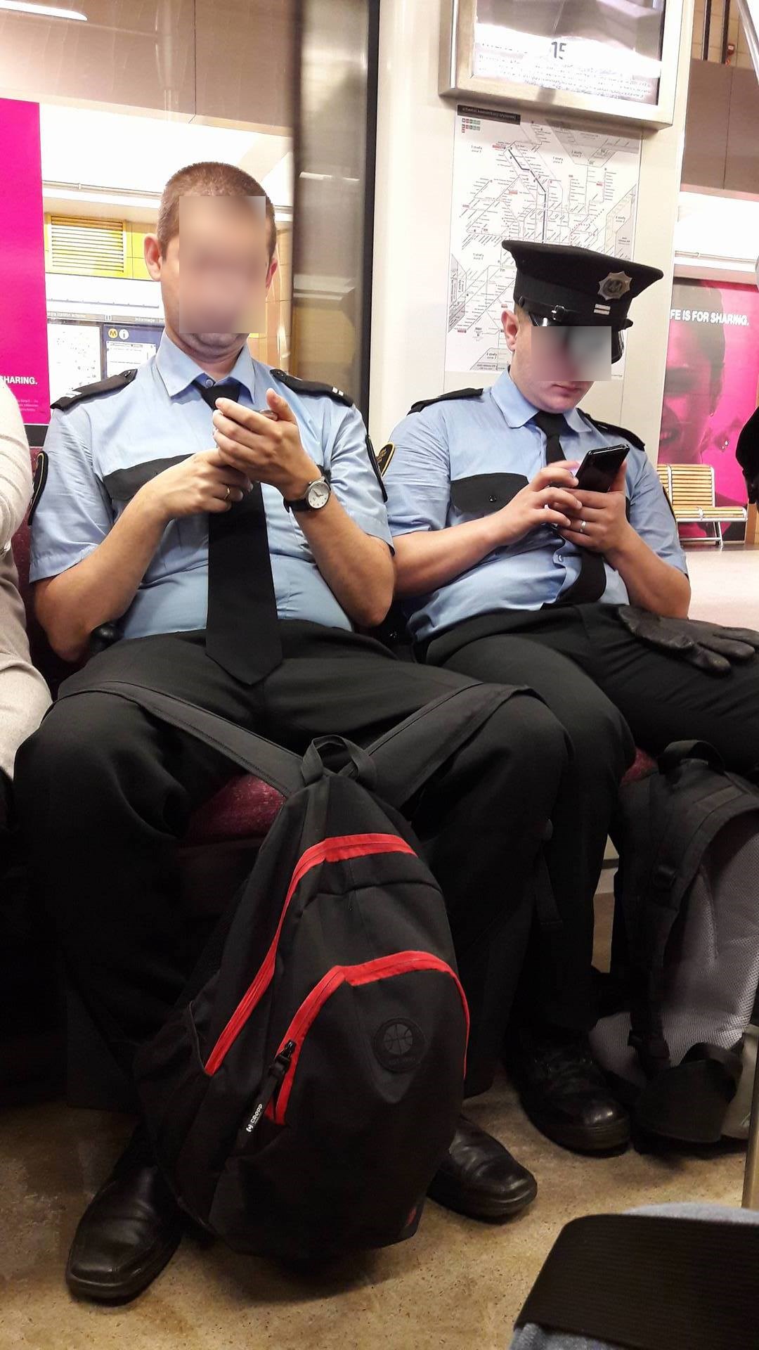 Nasza Czytelniczka pragnąca zachować anonimowość przysłała nam zdjęcie z metra: „Służby w metrze, zawsze gotowe do służby. Obok Panie stały. Nie mogłam się oprzeć. Moje dziecko powiedziało :ci panowie to chyba nie są naprawdę ze służby metra, tylko się przebrali, bo tacy rozwaleni siedzą
