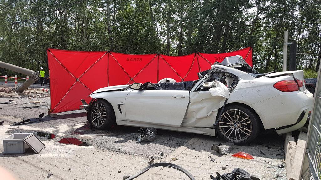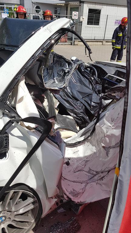 Po dojeździe zastano samochód osobowy stojący na poboczu, któremu pod wpływem uderzenia w latarnię ścięło dach. Na miejscu zdarzenia byli obecni ratownicy medyczni, którzy ze względu na rozległe obrażenia osoby kierującej pojazdem nie podjęli reanimacji. Po przyjeździe Zespołu Pogotowia Ratunkowego lekarz potwierdził zgon osoby kierującej.