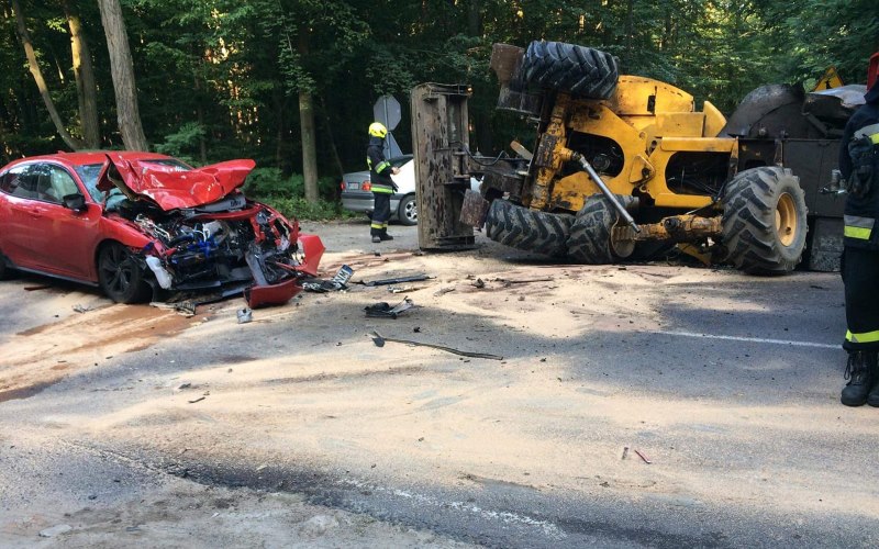 We wtorek po godzinie 7.00 w miejscowości Bogatki gm. Piaseczno doszło do zderzenia samochodu osobowego marki honda z koparką. Uderzenie było tak silne, że ważąca kilka ton koparka przewróciła się, a droga na kilka godzin została całkowicie zablokowana.