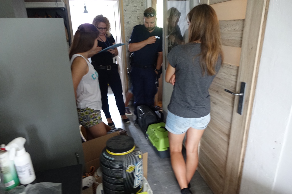 Wspólnie z policją udaliśmy się do jej mieszkania. Mieliśmy dużo szczęścia, bo właścicielka zwierząt akurat była spakowana i opuszczała mieszkanie. W mieszkaniu zostano ponad 20 zwierząt. Fretki, koty, szczury, psy, koty i królik trzymane były na 48 metrach kwadratowych. Żyły we własnych odchodach, niesprzątanych od dawna. Część zwierząt trzymana była w szafce na buty, bez możliwości wyjścia, inne były poranione, ze złamaniami łap, a nawet zanikiem kości, który to powstał od nieleczonego stanu zapalnego kończyn. Zabraliśmy połowę zwierząt, wobec których kobieta znęcała się i które miały obrażenia. Ustaliliśmy także świadków, którzy potwierdzili, iż Ewa O. utrzymuje psy w mieszkaniu po kilkanaście godzin bez wychodzenia z nimi na dwór. Znajomi kobiety opowiadali, iż gdy była zdenerwowana potrafiła nawet rzucić psem o drzwi – mówi Grzegorz Bielawki z „Pogotowia dla Zwierząt”.