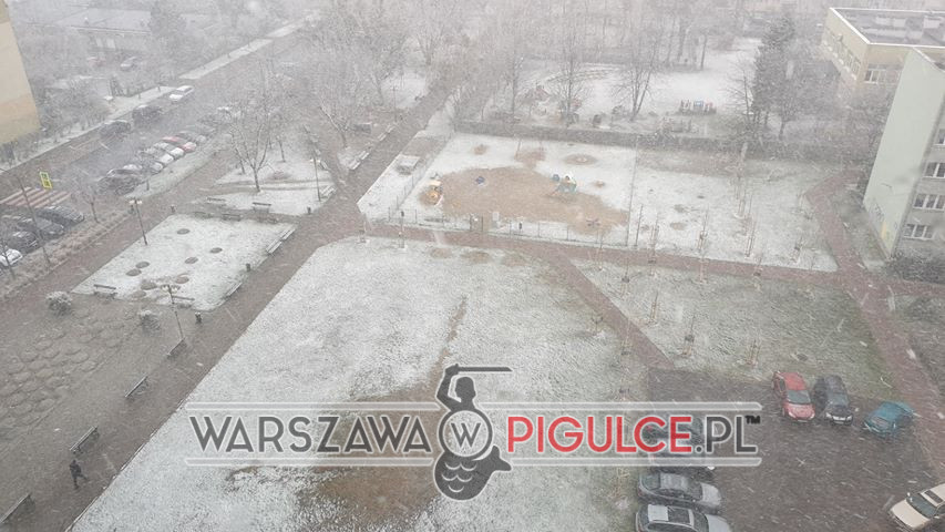 Wtorkowe popołudnie bardziej przypomina krajobraz grudniowy, niż koniec marca. W Warszawie od 2 godzin pada śnieg.