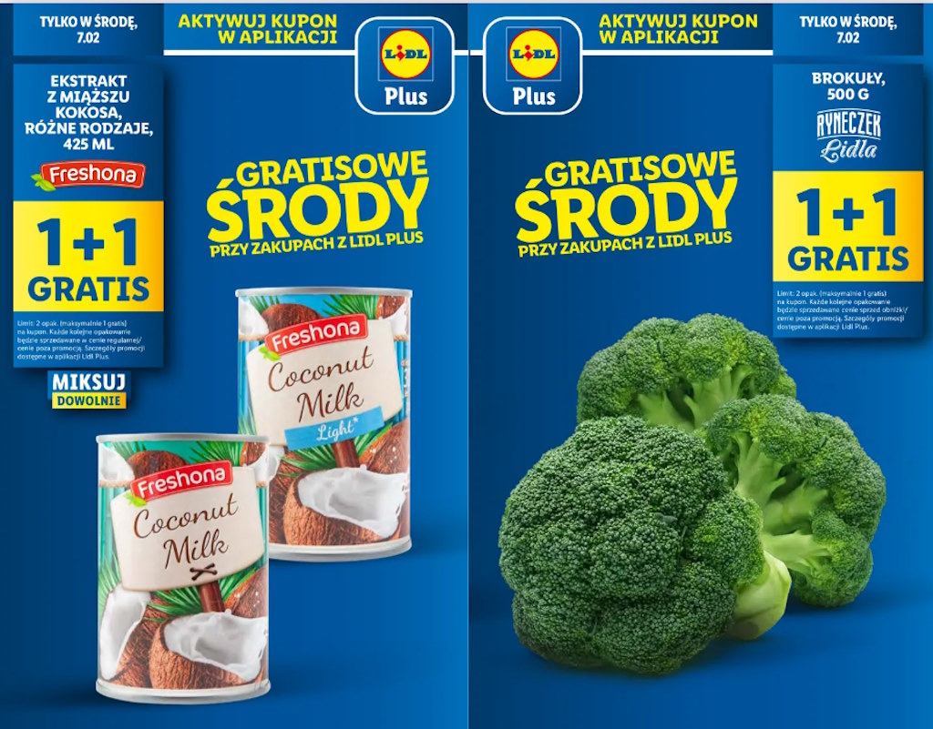 Nie zapomniano również o miłośnikach warzyw – w ofercie promocyjnej znajdą się brokuły w opakowaniach 500 g od marki Rynecek Lidla. To doskonała okazja, aby uzupełnić domowe zapasy świeżych warzyw, które są nie tylko zdrowe, ale i wszechstronne w kuchni. Podobnie jak w przypadku ekstraktu kokosowego, oferta „1+1 gratis” umożliwia zakup dwóch opakowań brokułów w cenie jednego.