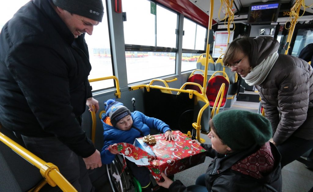 Warszawa, 22.12.2016 ZTM, Mobilis oraz Fundacja Mam Marzenie spełniły pragnienie małego chłopca, który chciał zostać kierowcą autobusu. Na nowej zajezdni chory na przepuklinę oponowo-rdzeniową 7-letni Wojtek mógł poznać codzienną pracę kierowcy i przejechać się dwoma nowoczesnymi 9 i 18-metrowymi autobusami. Wielu wrażeń dostarczyło także zwiedzanie Zajezdni Ursus z udziałem mistrza warsztatu Mobilis.