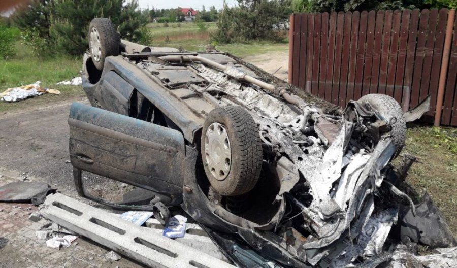 Mężczyzna podczas manewru wyprzedzania wypadł z drogi i uderzył w słupy linii energetycznej i ogrodzenie posesji. W wyniku zdarzenia 4 pasażerów auta trafiło do szpitala. Kierowca po przebadaniu miał ponad 2 promile alkoholu w organizmie.