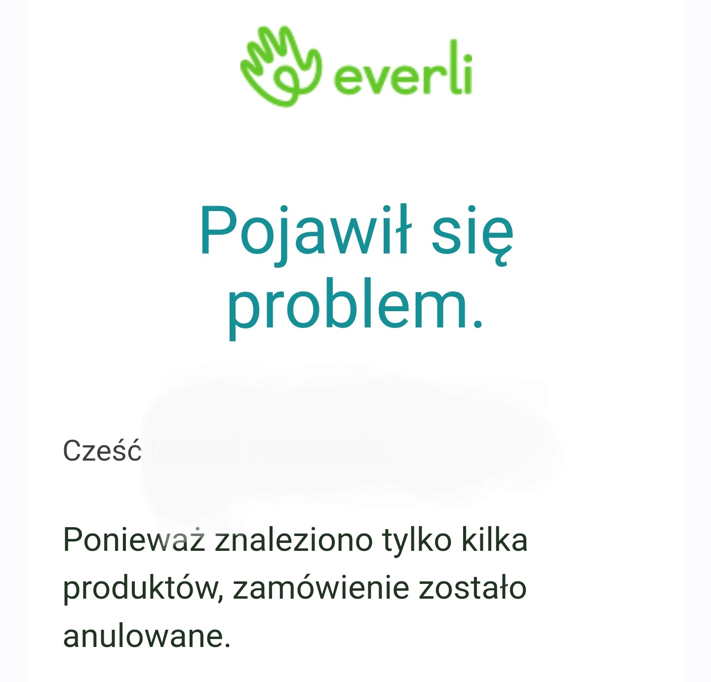 Wykorzystując aplikację Everli, tym razem zamówiliśmy cukier z Kauflanda. Dostaliśmy jednak wiadomość zwrotną.