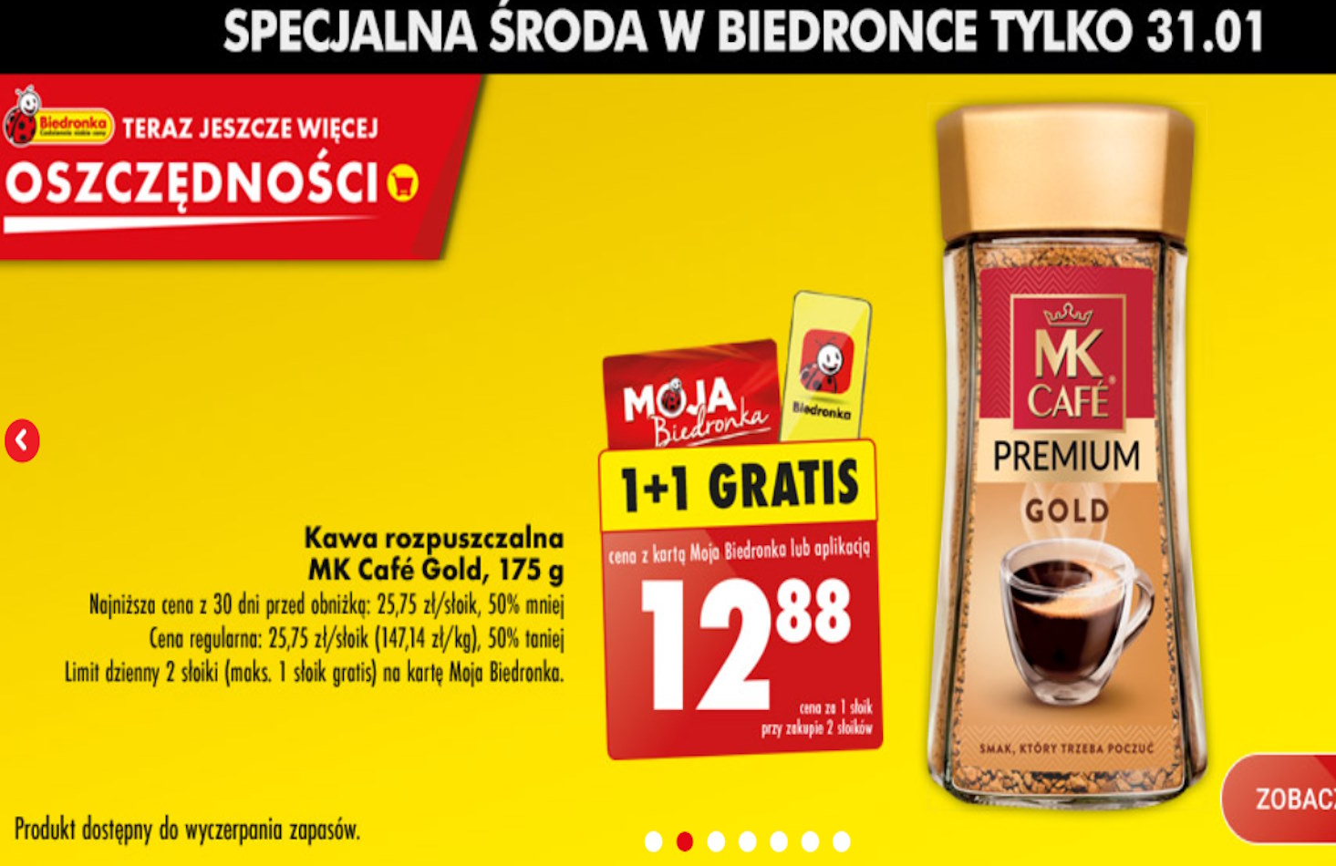 Środa pełna oszczędności w Biedronce – wyjątkowa promocja 1+1 gratis na kawę MK Café Gold!