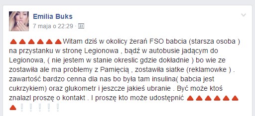 Dyskusja na jednej z grup zakończyła się poście w którym użytkowniczka dowiaduje się o znalezionych lekach na Bemowie. Okazuje się jednak, że to nie ta torba i nie zawiera rzeczy, które są najbardziej potrzebne. Jeżeli znaleźliście torbę z insuliną i nie wiecie do kogo należy, skontaktujcie się z Panią Emilią, której konto widnieje powyżej.