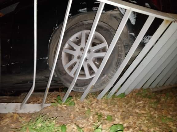 Stracił panowanie nad autem uderzył w barierki i drzewo. Auto wisi nad skarpą