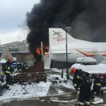 Straż pożarna publikuje zdjęcia z pożaru kebabu niedaleko samolotu. „Zabezpieczono butle z gazem”