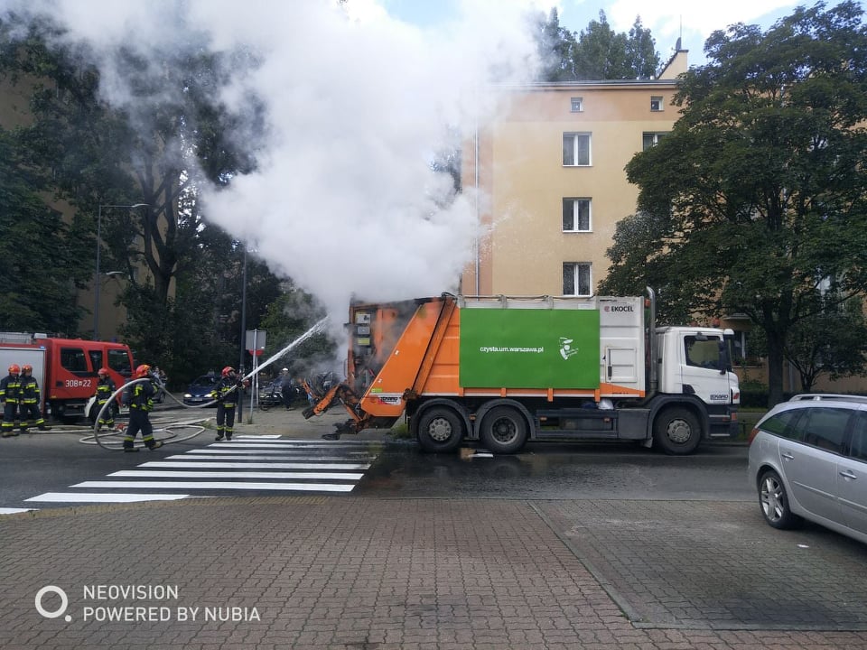 Na ulicy Kordeckiego na warszawskim Grochowie doszło do pożaru śmieciarki. Zapalił się sam pojazd jak również znajdujące się na nim śmieci.
