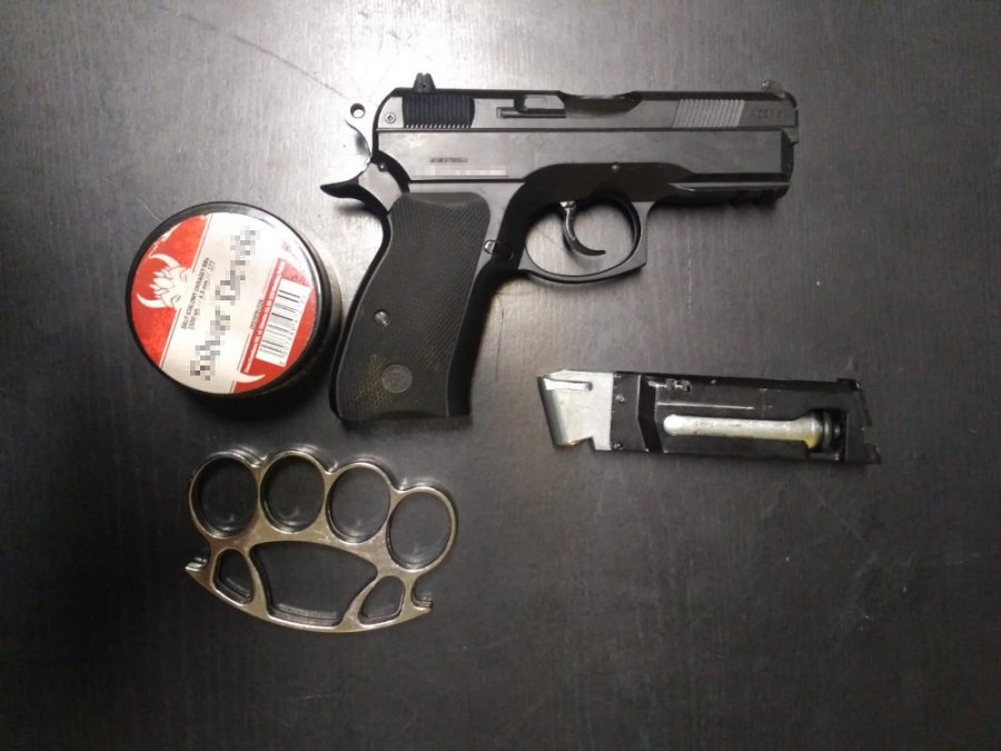 Mundurowi bardzo szybko ustalili mieszkanie, z którego padały strzały. Idąc do niego, na klatce schodowej spotkali, jak się później okazało, wynajmującego to mieszkanie. Razem z 24-latkiem weszli do środka. W lokalu policjanci zabezpieczyli wiatrówkę wraz z magazynkiem i pudełkiem śrutu, które to wydał im mężczyzna. Ponadto funkcjonariusze sprawdzili, co posiada przy sobie 24-latek. W jego odzieży znaleźli kastet, który także trafił do depozytu.