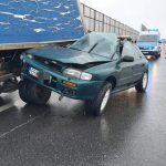 Na trasie S2 na wysokości ulicy Regulskiej w kierunku Okęcia kierujący samochodem osobowym marki Subaru wbił się w tyła auta dostawczego. Pojazd wbił się prawym rogiem w róg dostawczaka.