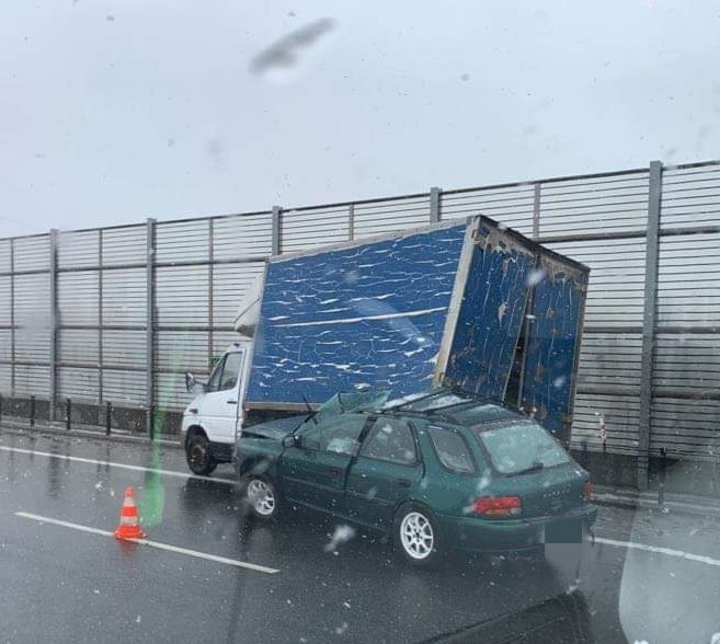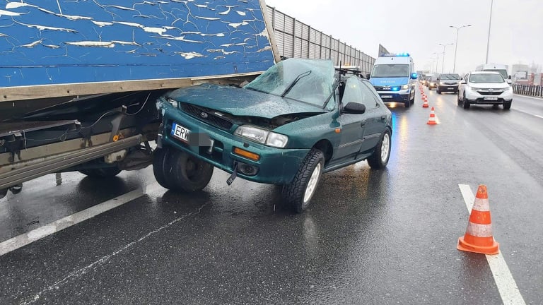 Subaru wbiło się w tył auta dostawczego na trasie S2!