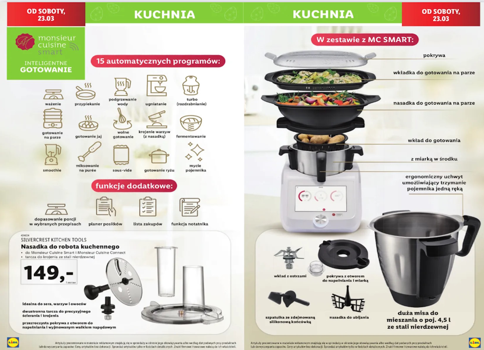 Już w najbliższą sobotę, 23 marca, Lidl przygotował prawdziwą gratkę dla wszystkich miłośników gotowania. W ofercie specjalnej sieci znajdzie się kultowe urządzenie kuchenne – monsieur cuisine Smart – dostępne tylko w sklepach stacjonarnych, teraz w atrakcyjnej supercenie. To propozycja dla tych, którzy chcą podnieść swoje kulinarne umiejętności na wyższy poziom bez wydawania fortuny.