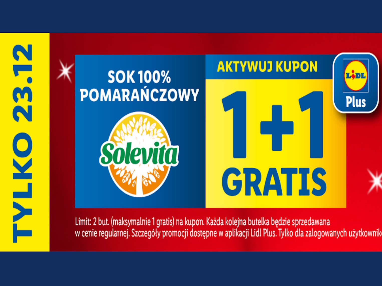 W przedświątecznym okresie, znany sieci sklepów Lidl przygotował dla swoich klientów wyjątkową promocję. Tylko w dniu 23 grudnia, po aktywowaniu specjalnego kuponu w aplikacji Lidl Plus, klienci będą mogli skorzystać z atrakcyjnej oferty na sok pomarańczowy 100% marki Solevita.