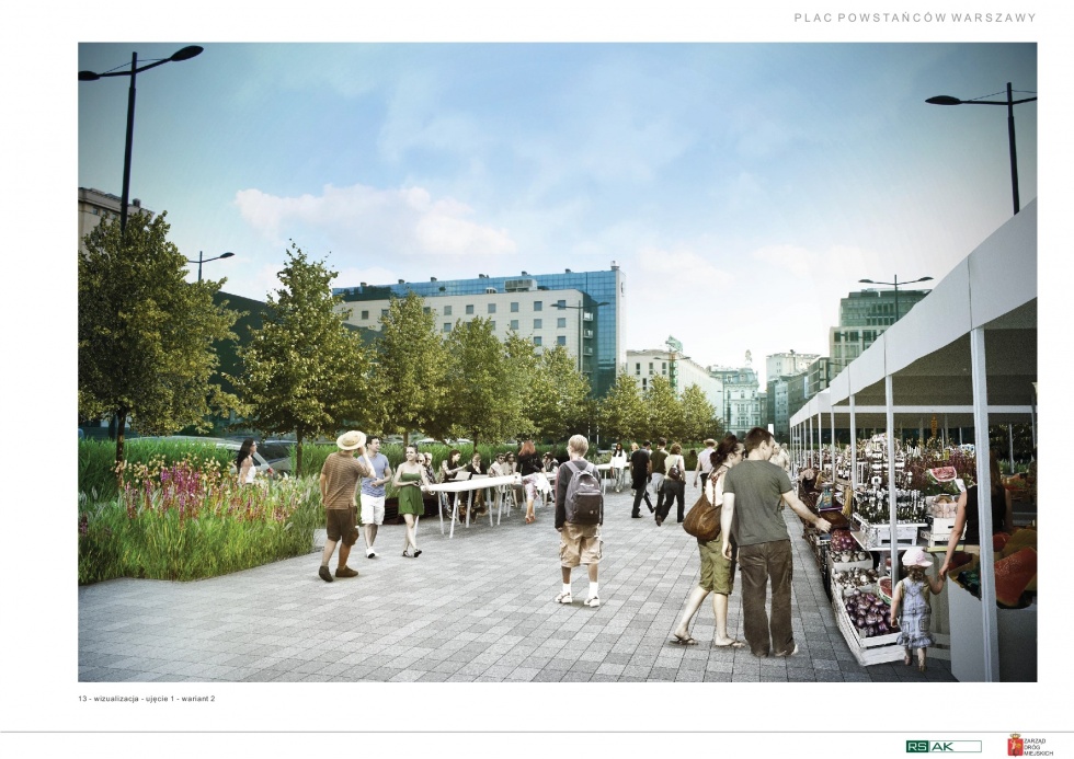 Zmiany czekają też plac Powstańców Warszawy. Ponad 1000 m kw. nawierzchni placu zmieni się w zieloną łąkę kwietną, obsadzoną tysiącami kwiatów i bylin. To jednak nie wszystko – na placu pojawi się też ponad tysiąc krzewów (wierzby purpurowej i wierzby rokity). Posadzimy też 25 lip srebrzystych, wysokich na 6,5-7 m. Drzewa zostaną zasadzone w stalowych misach, dzięki czemu będzie je można przesadzić podczas planowanej w kolejnych latach budowy garażu podziemnego pod placem.