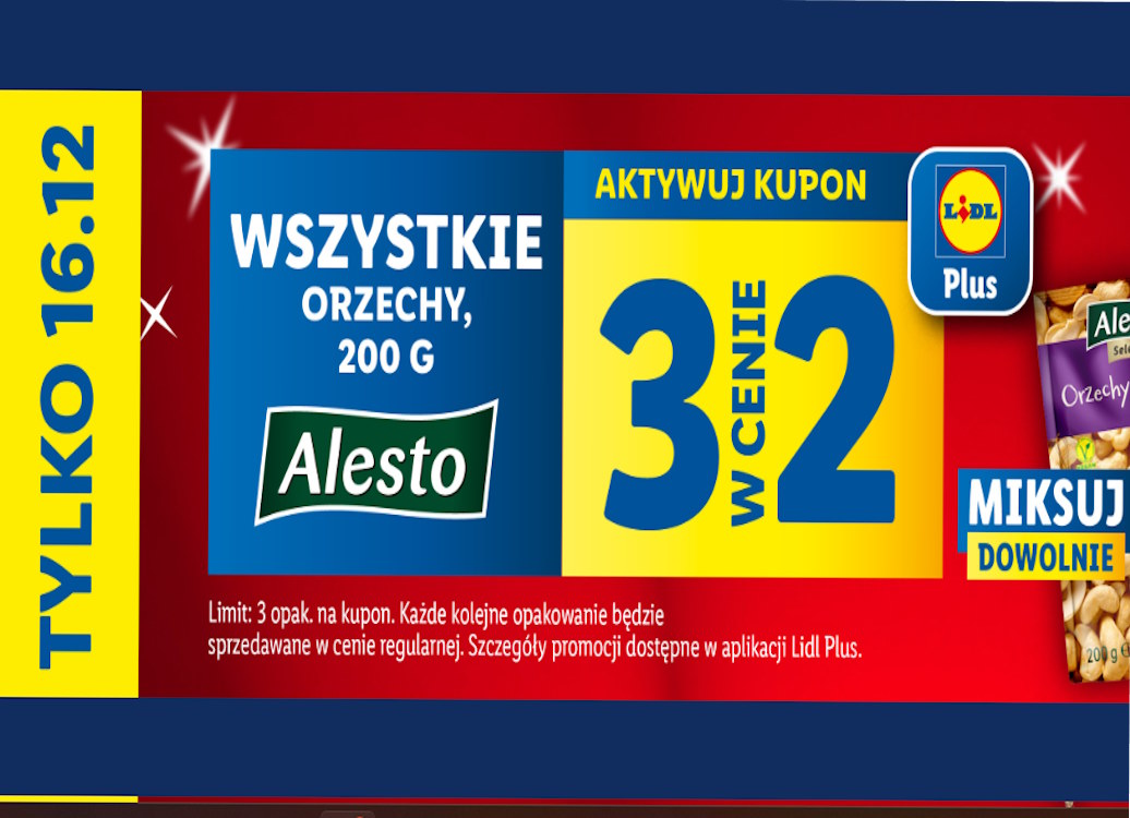 W Lidlu już świąteczna atmosfera zaczyna rozbrzmiewać w każdym kącie sklepu, a oferta specjalna na orzechy tylko to potwierdza. Znane ze swojej jakości orzechy marki Alesto, które świetnie sprawdzają się w świątecznych przepisach, będą dostępne w promocyjnej cenie już 16 grudnia. To idealna okazja, by zaopatrzyć się w ten niezbędny składnik wielu świątecznych wypieków.