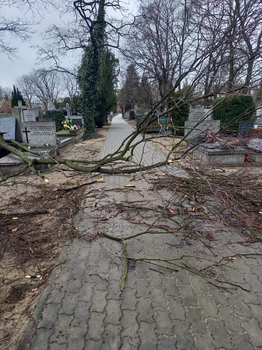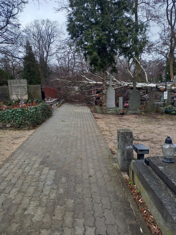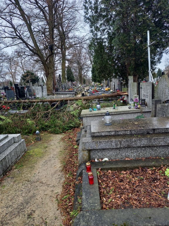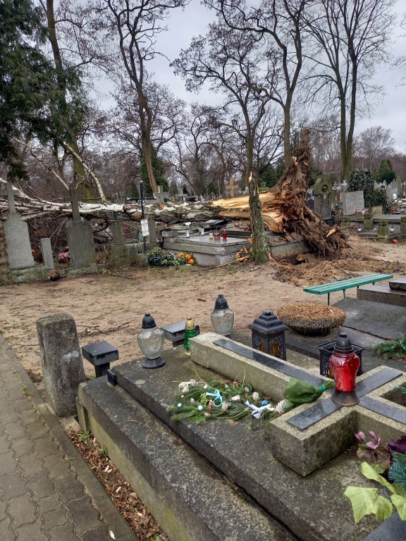 Pani Beata przesłała nam zdjęcia z cmentarza Bródnowskiego. Wszędzie leżą poprzewracane drzewa, wydaje się więc, że odwiedzenie cmentarza nie jest teraz bezpieczne.