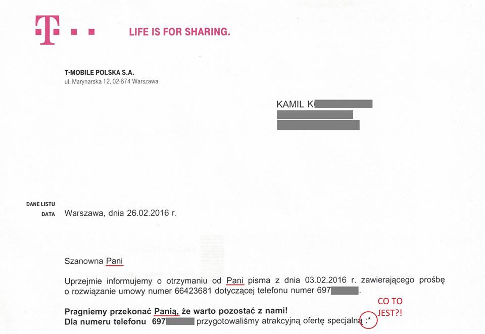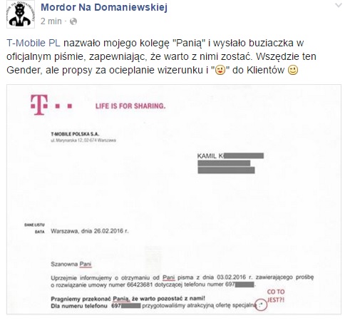 Fanpage Mordor na Domaniewskiej opublikował dość ciekawy list, który T-Mobile wyslało do jednego ze swoich klientów. Niby nic niezwykłego… ale…