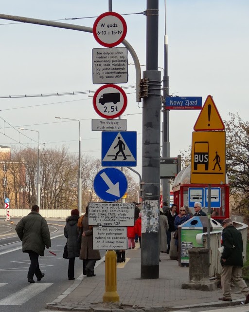Lokalsi nazywają wjazd na trasę W-Z totemem z powodu ilości znaków, które tam widnieją. W godzinach szczytu przejazd Mostem Śląsko – Dąbrowskim jest niemożliwy. Ratusz chce złagodzić ten