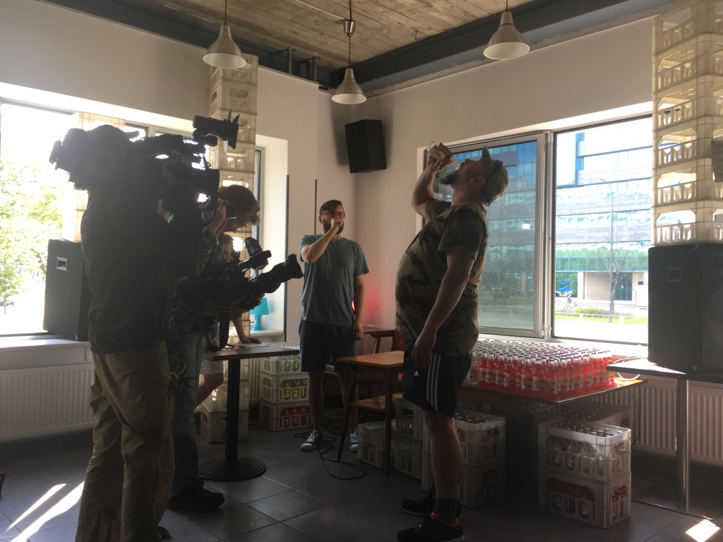 Andrzej Piotrowski z Białołęki, mistrz świata w piciu oranżady opróżnił butelkę w 5,53 sekundy, Nie udało się pobić poprzedniego rekordu, ale wystarczyło to, by wygrać z innymi zawodnikami.