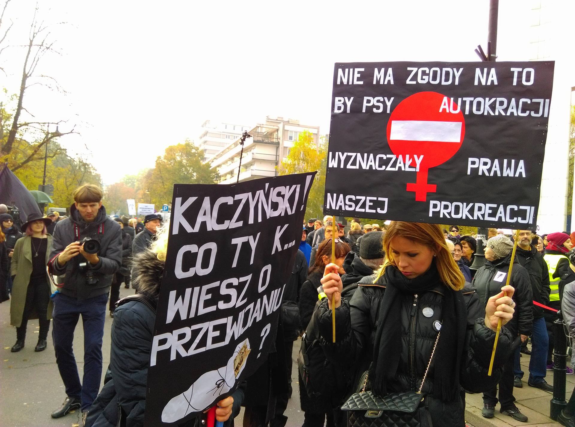 Pod Sejmem jest już około dwa tysiące osób. Na scenie organizatorki przekrzykują ruchy pro-life, puszczają głośną muzykę i krzyczą hasła m.in. „Wolność, równość, aborcja na żądanie”.